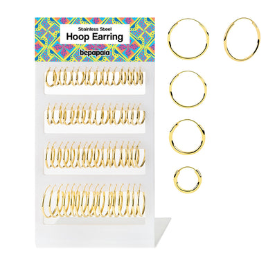 El aro dorado es un pendiente clásico y elegante que además se convierte en una de las tendencias de la temporada. Este expositor trae aros de plat...