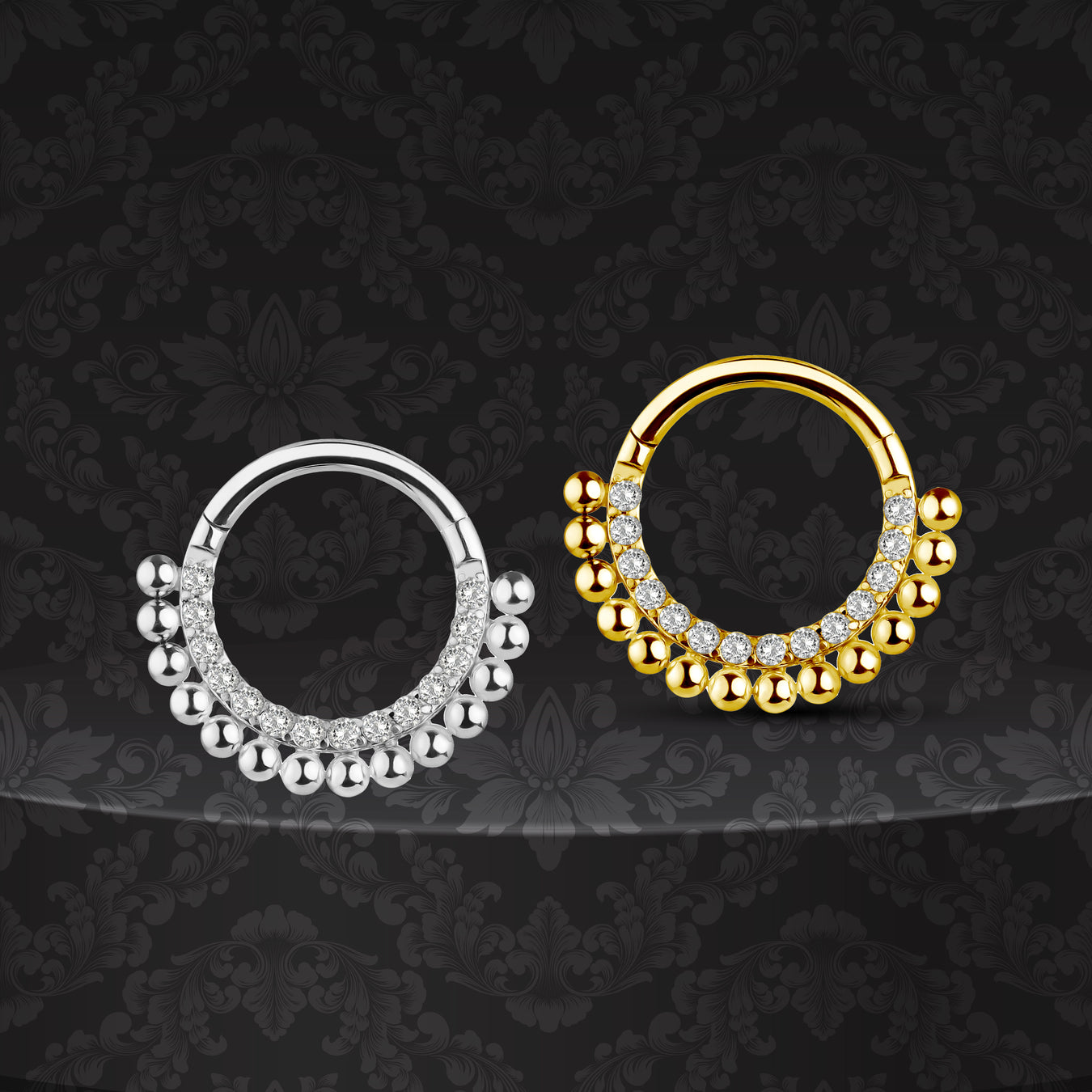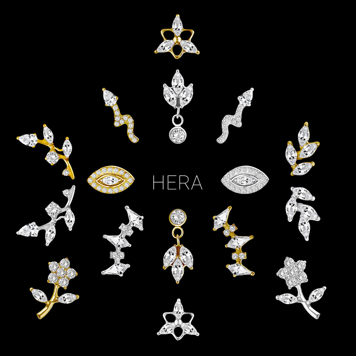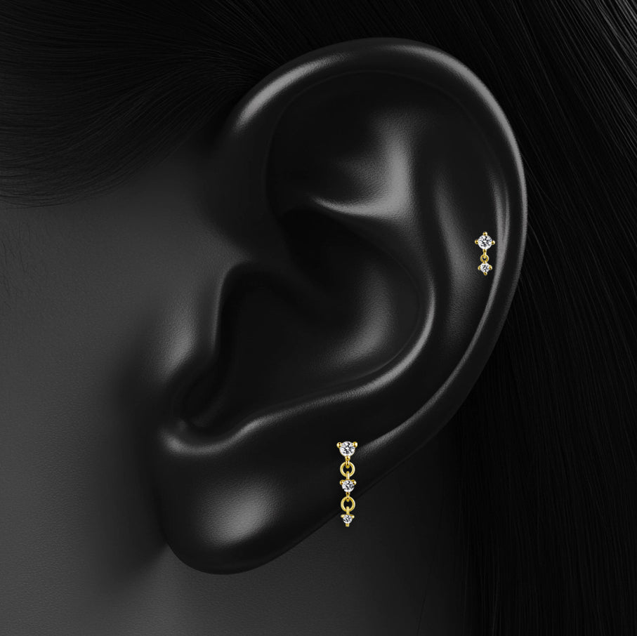 Titanium ASTM F136 Grade 23 ear piercing with zircones. 3 designs available. Internal thread closure. A high-end piercing for the most refined women.