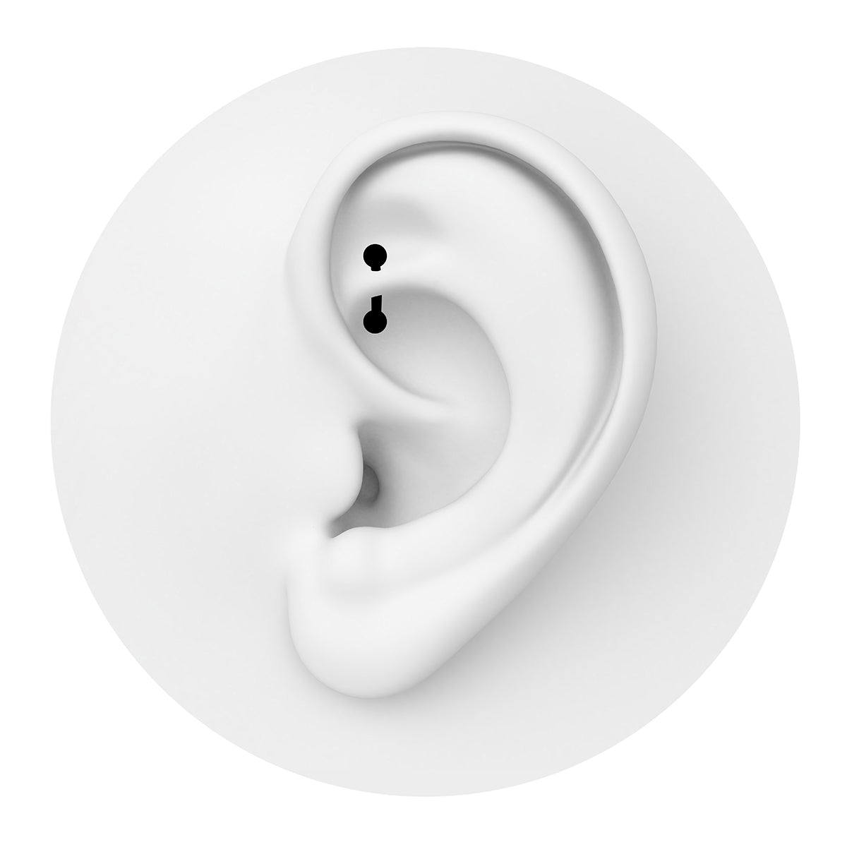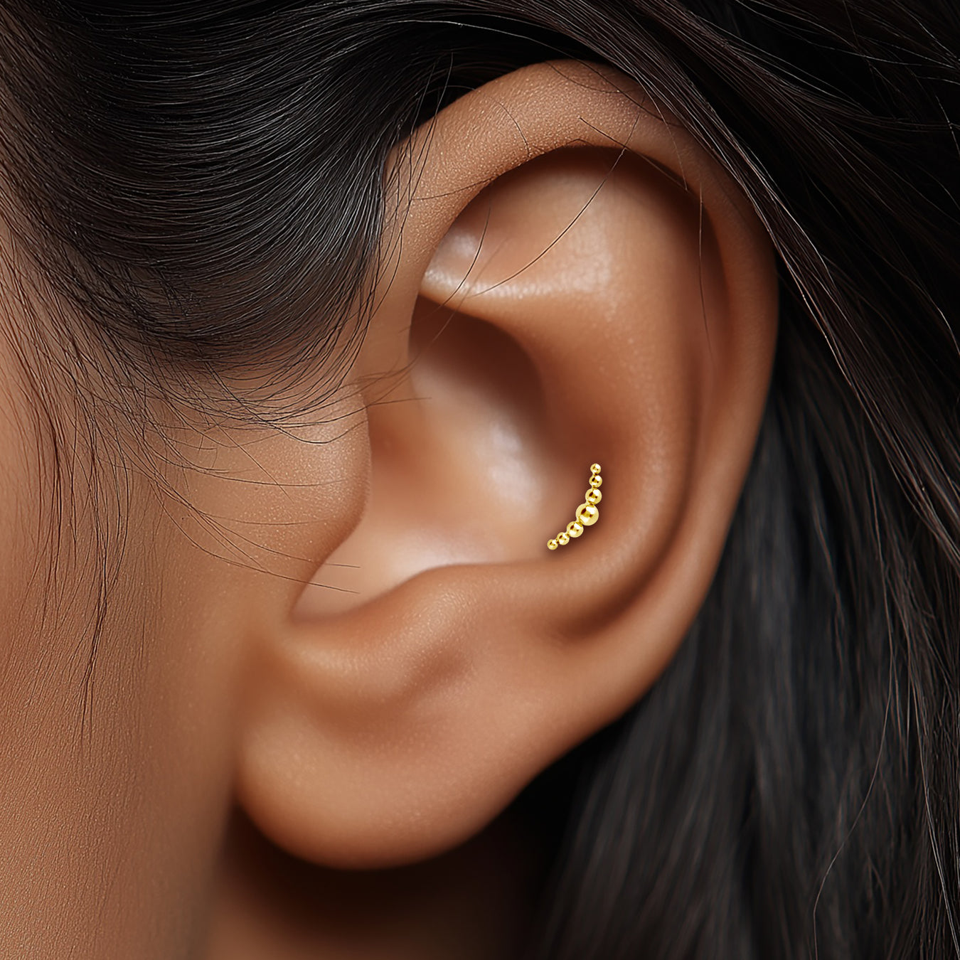 316L Surgical Steel tragus piercing trinity. Available in 3 sizes. A classic and timeless piercing that looks great combined with other ear piercings.