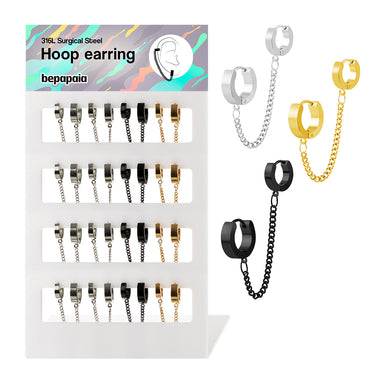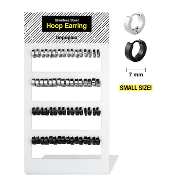 Stainless steel and black steel hoop earrings in 2.5mm and 3mm thicknesses, with a range of diameters from 10mm to 16mm. These simple hoop earrings...