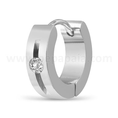 Stainless steel huggie hoop with black lines. A classic hoop earring with urban style available in assorted designs. This is a very recommended it...