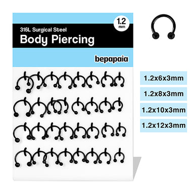 Black steel hinged segment ring 1.2x6,8,10mm