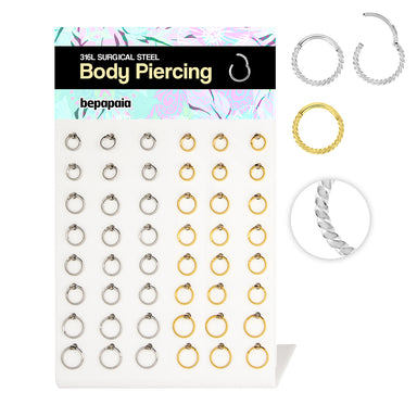 Surgical steel 316L hinged segment ring in assorted sizes: 1.2 & 1.6 x 6,8,10 and 12 mm.