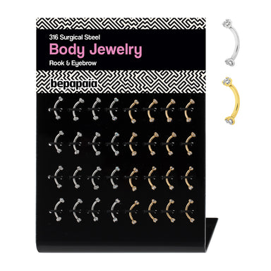 Stainless steel, gold steel and black steel microbanana piercing. Size: 1.2 x 8 x 3 mm.