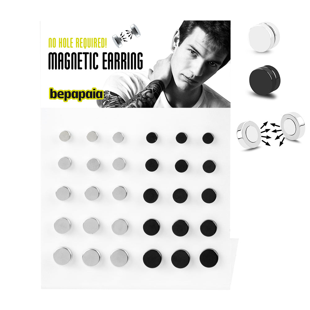 Description: In this display we flaunt our magnetic fake plugs, made from surgical steel and black steel. They’re so easy to put on, just place the magnet with the opposite pole at the back of the earlobe. The strong magnet provides an extra firm hold on the plug and they are highly resistant. They’re ideal for those who don’t want to stretch their ear, but wish to add a modern touch to their look. They’re also child-friendly, as they are made from surgical steel, so will never cause allergic reactions. Assorted sizes: 6-10 mm.