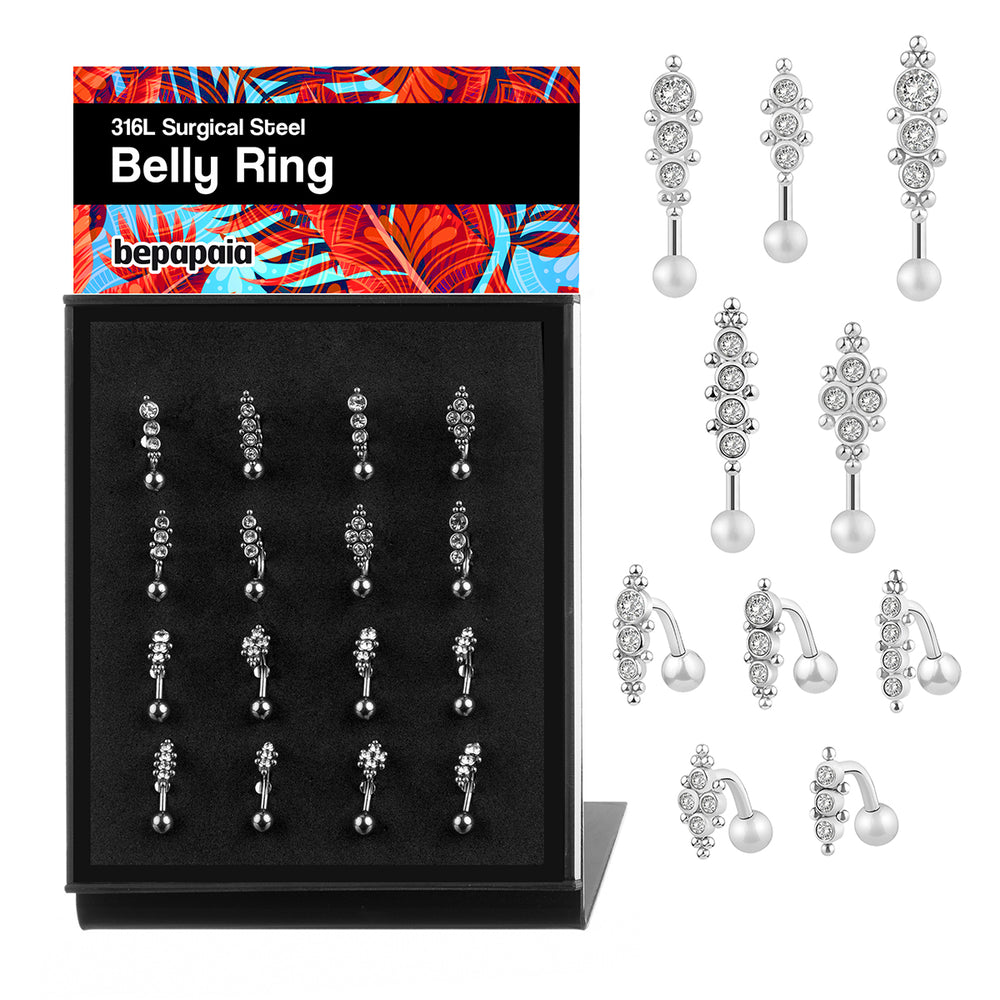 Description: 316L Surgical Steel internally threaded belly ring reverse cluster.