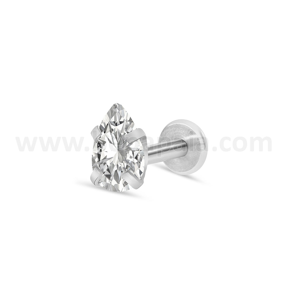 316L surgical steel ear piercing with internally threaded tear drop CZ.