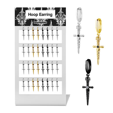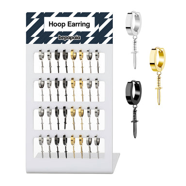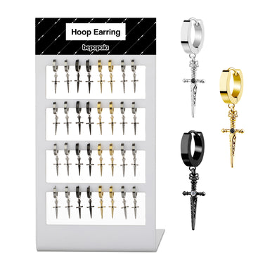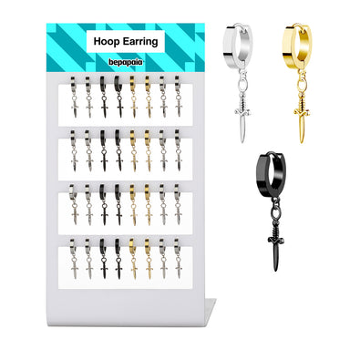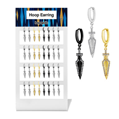 Boucle d’oreille Créole en acier avec pendentif cône. 3 tailles de cônes disponibles.