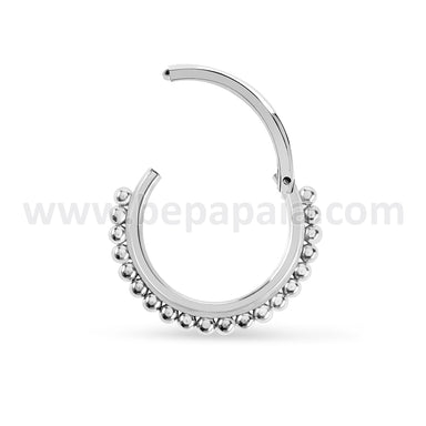 Piercing anneau à charnière avec fermeture Clicker en Acier Chirurgical 316L avec cônes et perles. Disponible en couleurs acier et or. Commandez vi...