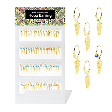 Boucle d’oreille Créole en Argent massif 925 avec pendentif plume. Trois designs de plumes disponibles sur ce présentoir top vendeur. Les boucles d...