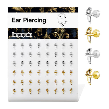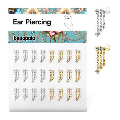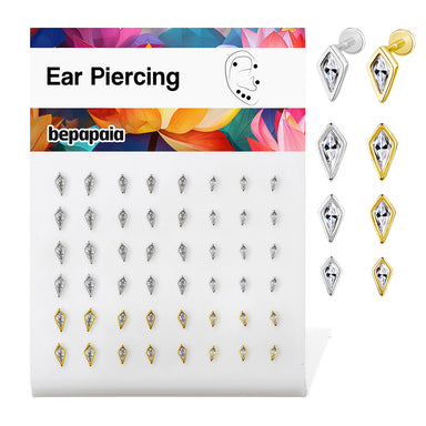 Piercing en Acier Chirurgical 316L doré avec pierre sertie ronde ou carrée. Son fermoir à pas de vis interne permet au piercing d’être très facile ...