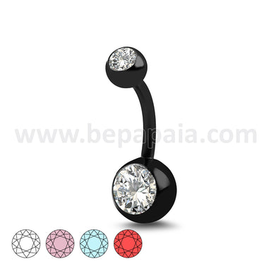 Piercing nombril en Acier Chirurgical 316L Noir avec 2 pierres couleurs assorties