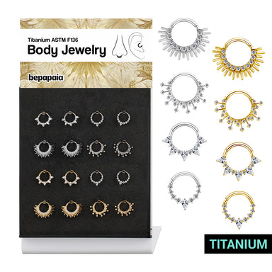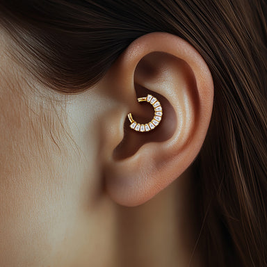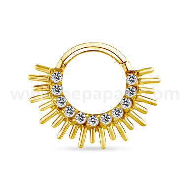 Anneau à charnière avec fermeture Clicker en Acier Chirurgical 316L avec pierres. Un piercing anneau idéal pour le daith et aussi pour le septum. D...