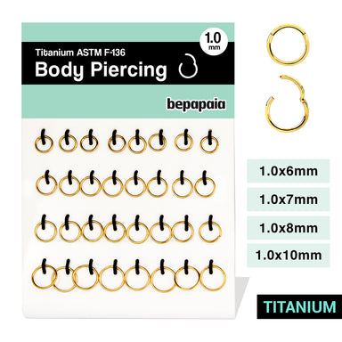 Aro clicker de Acero Quirúrgico 316L con relieve piramidal. Disponible en 4 tonos: acero, dorado, negro y arcoiris.