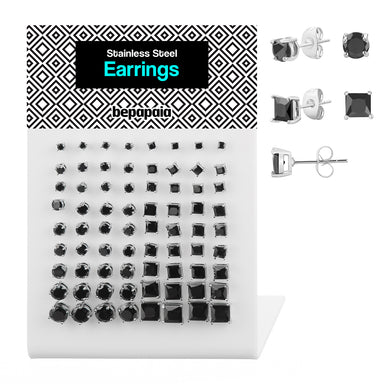 Orecchino in acciaio con pietra nera tonda e quadrata. 2 modelli e 6 dimensioni. Non ci pensare troppo, offri ai tuoi clienti orecchini classici e ...