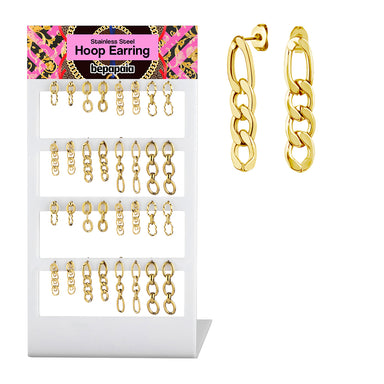 Orecchino in acciaio dorato con catena. 8 modelli di tendenza per sorprendere i tuoi clienti.