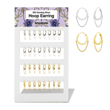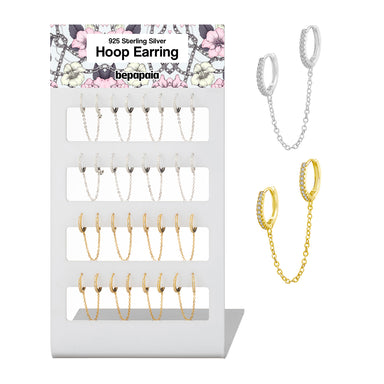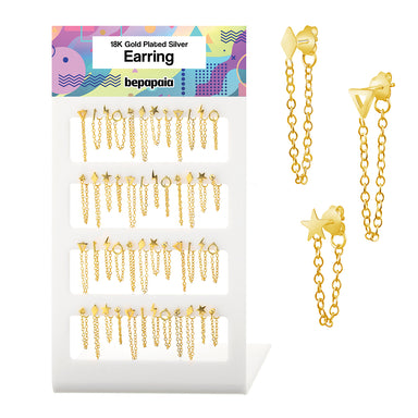 Orecchino a bottone in Argento placato Oro 18kcon zirconi assortiti e una delicata catena. Disponibili in 10 dei modelli più alla moda, questi orec...