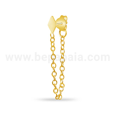 Orecchino a perno in argento con placcatura in Oro 18K con catena e zircone. Disponibile con 3 modelli di zircone: taglio baguette, tondo e a goccia.