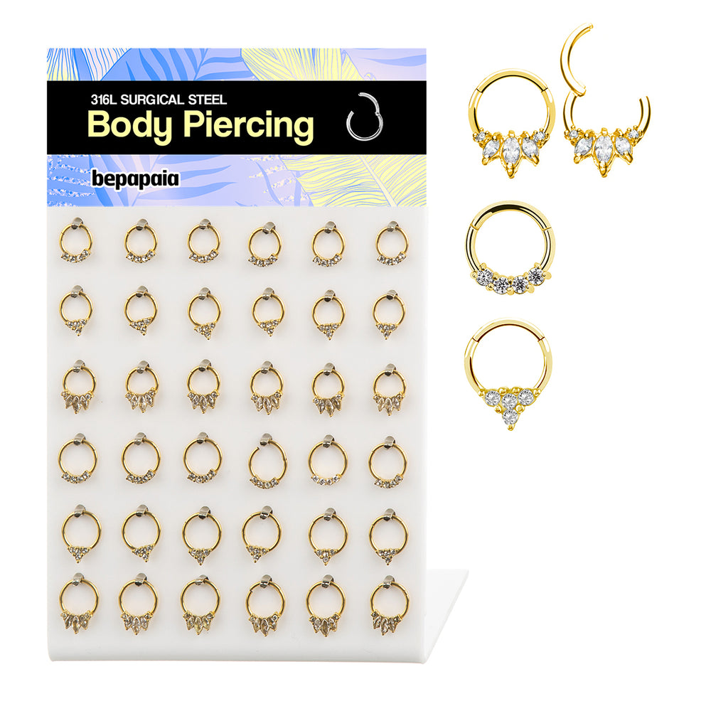 Aro clicker de Acero Quirúrgico 316L con brillantes. Cuatro diseños con brillantes disponibles en 8 y 10mm. Queda muy bonito en el daith.