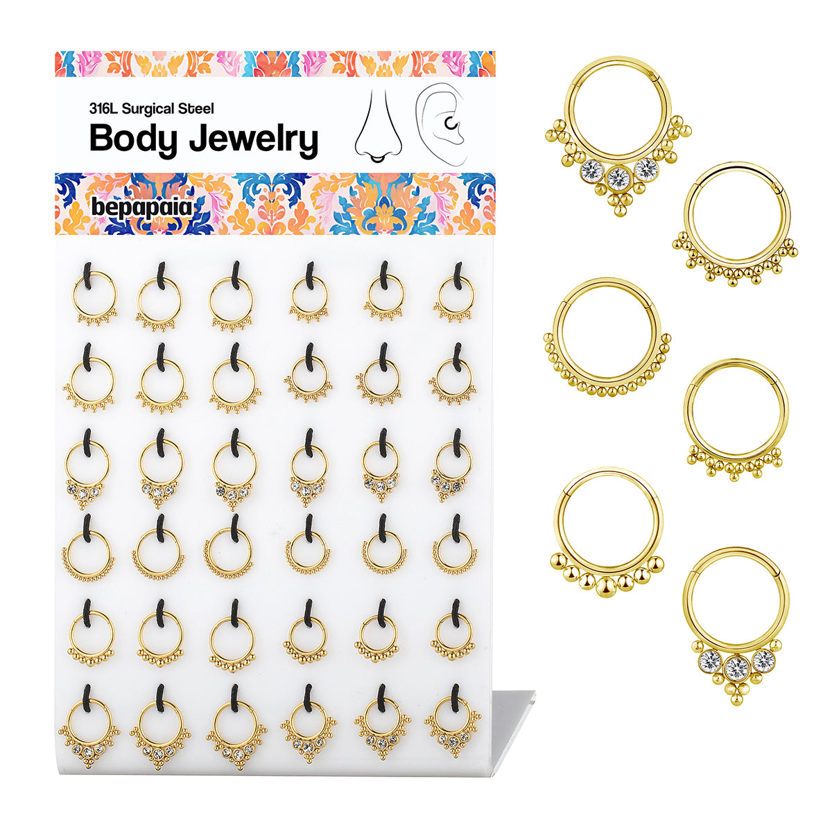 ¡Ambas opciones! Muchos de nuestros productos tienen un símbolo que indica si puedes comprarlos en packs de 5 o como parte de un expositor. Estamos ampliando esta opción para que puedas disfrutar de más referencias disponibles para compra individual. Y no olvides nuestra sección de piercings de línea básica, que viene en prácticos packs de 5 unidades.