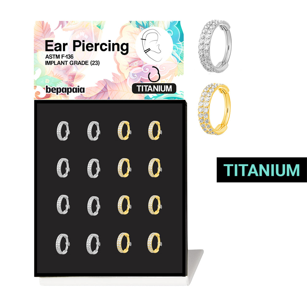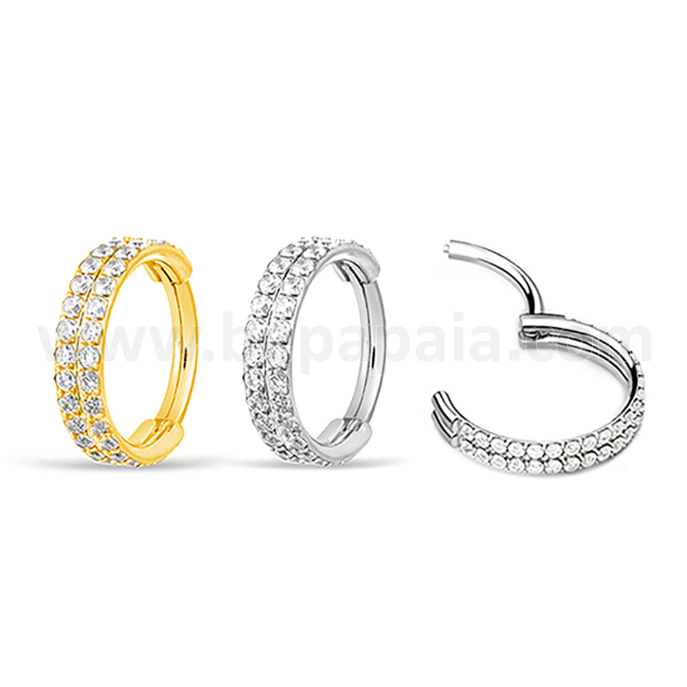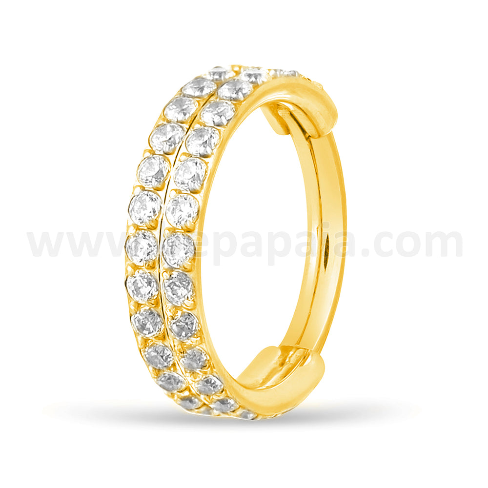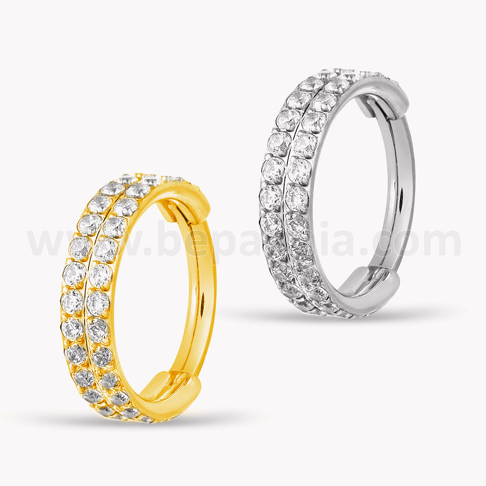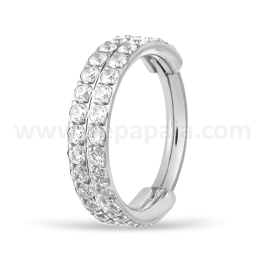 Aro clicker doble de Titanio ASTM F136 Grado Implante (G23). Con su doble línea de brillantes, este piercing de oreja, femenino y elegante, es una joya para el cartílago.